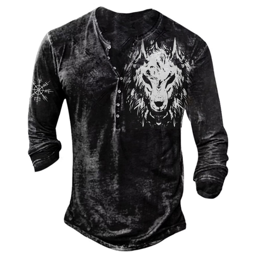 Wikinger-Wolf-Retro-Langarm-T-Shirt