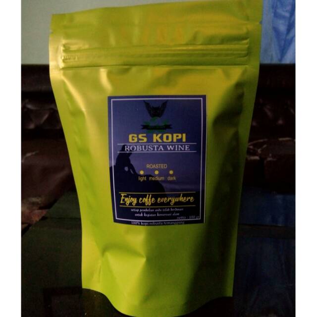 Kopi bubuk robusta dengan proses fermentasi wine. Menghasilkan rasa segar dengan sensasi berbeda. Terbuat dari biji kopi pilihan dari Temanggung dan benar-benar 100% petik merah.