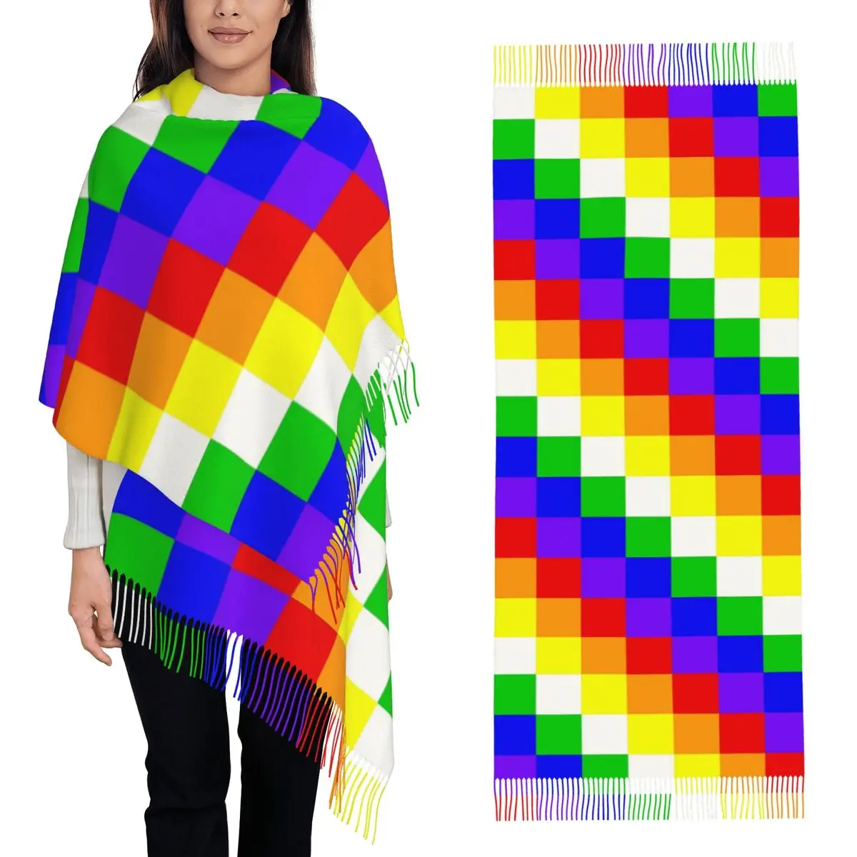 Wiphala модификация цвета шарф шарфы с кисточками женские мягкие теплые шали и накидки большая осенне-зимняя шаль
