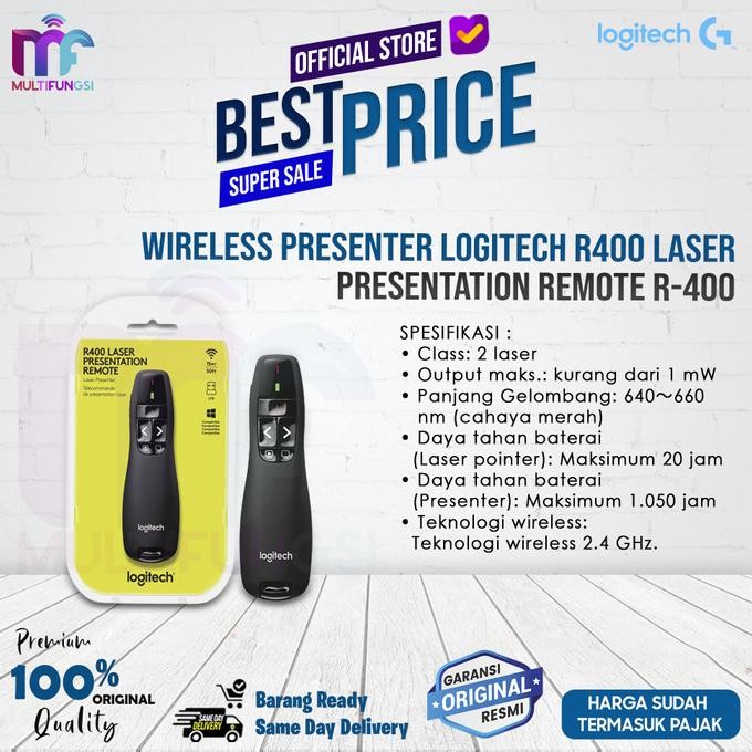 Logitech Wireless Presenter R400 Receiver wireless mini 2 baterai AAA Panduan kilat pengguna