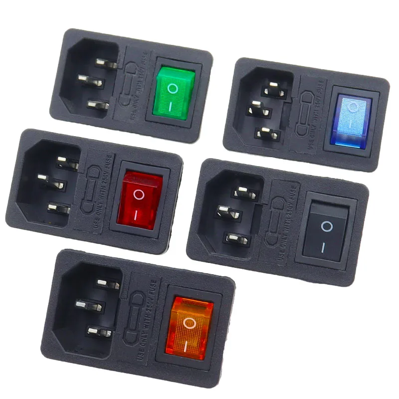 With 10A Fuse! Red Rocker Switch Fused IEC320 C14 Inlet Power Socket Fuse Switch Connector Plug Connector Red Green Blue Black