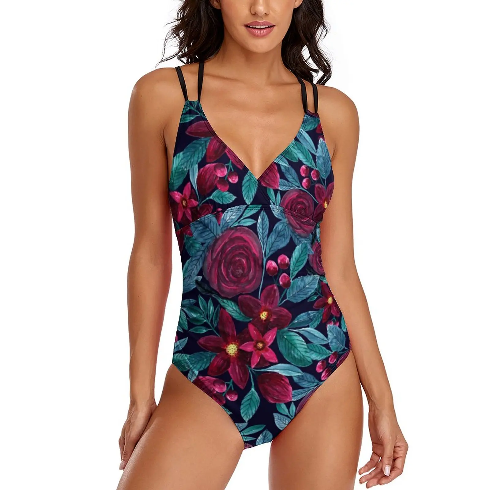 Элегантный купальник с розами, Рождественский купальник с цветочным принтом, цельные купальные костюмы, сексуальный стильный боди для серфинга, большие размеры
