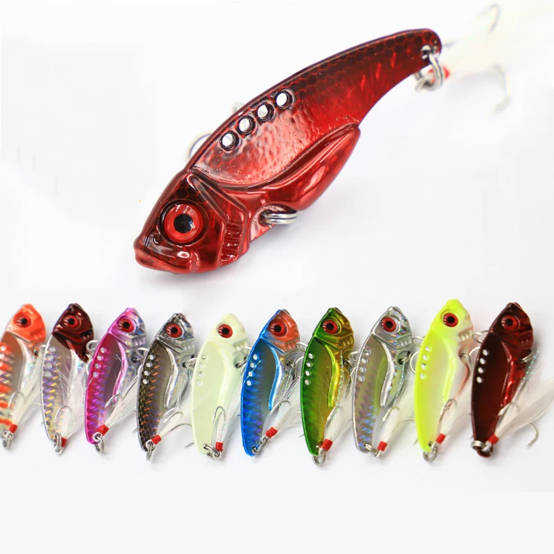 Wokotip 10-цветная металлическая Приманка VIB 7/10/15/20 г, приманка для рыбной ловли, Вибрирующая ложка, жесткая приманка с пером, кренкбейт, воблер, с...