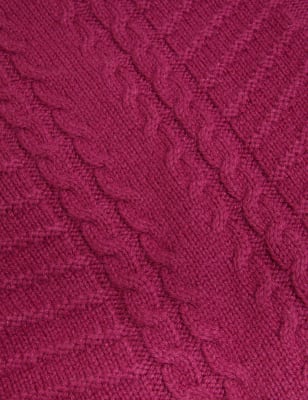 Womens Autograph Cable Knit Funnel Neck Jumper with Wool - Raspberry, Raspberry