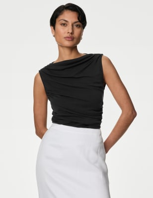 Crafted from modal-rich fabric, this sleeveless top from the Autograph collection has a luxuriously soft feel. It's designed in an easy regular fit with elegant front draping for a flattering silhouette. a flattering slash neckline. This elevated ribbed design is complete with a modern slash neck.n Autograph: premium investment pieces featuring contemporary cuts and refined finishing touches.