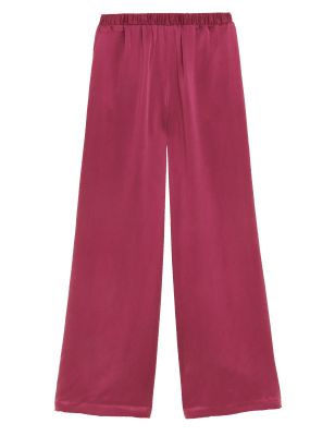 Supple pure silk gives these trousers from our Autograph collection a gorgeous lustre and elegant drape. The wide leg piece has a stylish mid-rise cut and an elasticated waist for comfort. We've added a lining to enhance the smooth fall of the fabric, flattering your shape. Made with recycled polyester lining and responsibly sourced viscose.n Autograph: premium investment pieces featuring contemporary cuts and refined finishing touches.