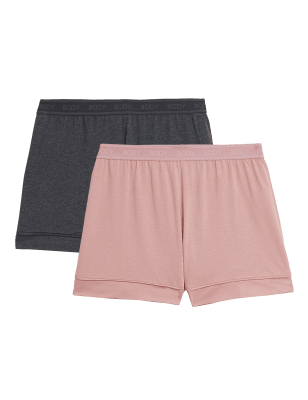 Womens BODY 2 Pack Cotton Modal Pyjama Shorts - Pink Mix, Pink Mix