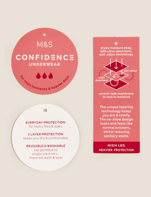 These high-absorbency full brief Confidence knickers mean you won't have to worry about leaks, even on the heavier days of your period. The three-layer gusset draws moisture away from the body, with an absorbent, anti-odour middle layer and a protective outer layer. High-rise style in cotton-rich fabric with added stretch for everyday comfort and StayNew™ technology. They're washable and reusable to help reduce waste.
