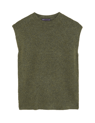 Womens M&S Collection Ärmelloser Rippenstrickpullover mit Rundhalsausschnitt - Dark Khaki, Dark Khaki