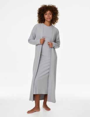 Bring elegance to your nightwear with this two-piece set. Regular fit. It includes a long, sleeveless nightdress and a belted, longline cardigan, both made from brushed, ribbed fabric for supreme comfort. Added stretch provides ease of movement.n n M&S Collection: versatile styles in modern shapes with unique and playful details.