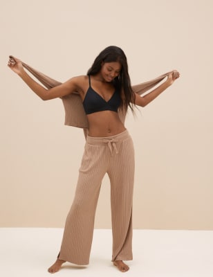 Made from cosy ribbed knit fabric, these wide leg bottoms are perfect for lounging. Comfy regular fit with an adjustable drawstring waist. Fabric has added stretch for easy movement. Matching hoodie available for a coordinated look. n M&S Collection: versatile styles in modern shapes with unique and playful details.