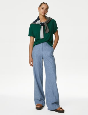 This plain t-shirt is a wardrobe classic. Comfortable relaxed fit, with a simple crew neckline and short sleeves for a breezy feel. n M&S Collection: easy-to-wear wardrobe staples that combine classic and contemporary styles.