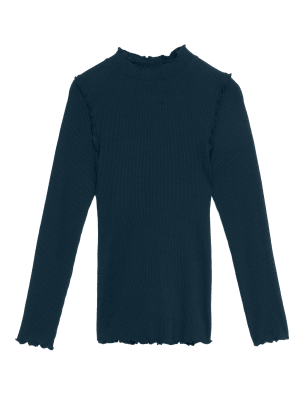 This soft, cotton-modal blend top is the perfect base for day-to-night outfits. Comfy regular fit, with an elegant high neck and long sleeves. The ribbed style is universally flattering. Lettuce-edge trims on the cuffs, neckline and shoulders add a feminine finish. We only ever use responsibly sourced cotton for our clothes.n M&S Collection: easy-to-wear wardrobe staples that combine classic and contemporary styles.