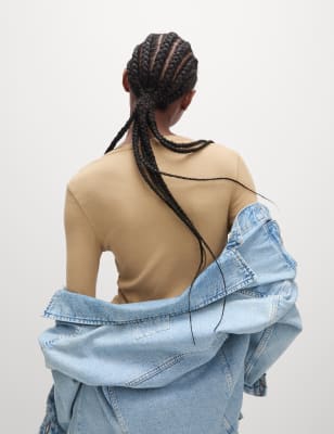 This long-sleeved top is made from cotton-rich material for a soft feel. Flattering slim fit, with an easy crew neckline and all-over ribbed texture to give a neat look. Added stretch in the fabric provides a comfortable finish.nnM&S Collection: easy-to-wear wardrobe staples that combine classic and contemporary styles.