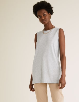 With its marl texture and simple sleeveless design, this vest top is a casual classic. Comfortable relaxed fit, with a longline shape. Flattering drapey look.nM&S Collection: easy-to-wear wardrobe staples that combine classic and contemporary styles.