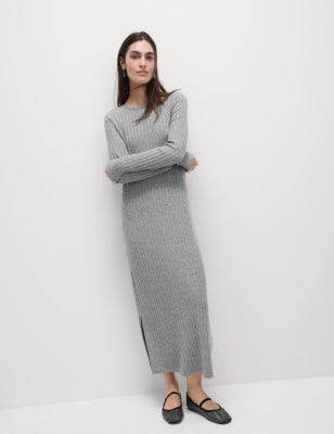 This jersey dress is made from a cosy warm-handle fabric with a hint of added stretch for comfort. It's cut to an easy regular fit in a stylish column shape. For a neat look, the midi-length design has a round neck and long sleeves. The sparkly ribbed detailing adds a touch of glamour to this versatile piece.n n M&S Collection: easy-to-wear wardrobe staples that combine classic and contemporary styles.