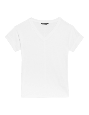 We've crafted this t-shirt with a touch of linen for a breathable feel. Regular fit, with a v-neck for easy wear. n M&S Collection: easy-to-wear wardrobe staples that combine classic and contemporary styles.