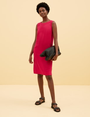 This linen-blend shift dress is a masterclass in stylish simplicity. It's cut in a regular fit for comfort, with a smart round neck and a cool, sleeveless finish. An elegant v-shaped back completes this versatile knee-length design. nM&S Collection: easy-to-wear wardrobe staples that combine classic and contemporary styles.