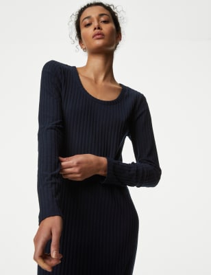 This flattering ribbed column dress is a sophisticated choice for smart occasions. It's designed in an easy regular fit with an elegant scoop neckline. An on-trend midi-length skirt completes the stylish look.n M&S Collection: easy-to-wear wardrobe staples that combine classic and contemporary styles.