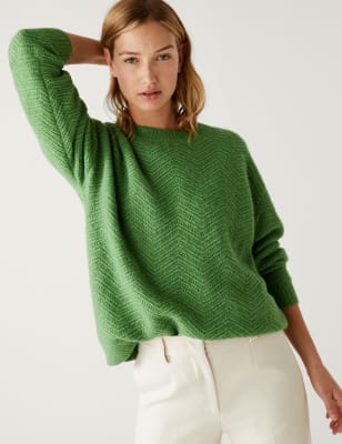We've woven a hint of wool into this textured jumper for a wonderfully warming effect. It's designed in a relaxed fit with a simple crew neck for easy layering. Ribbing at the cuffs and hem lock in heat to keep you toasty when the temperature drops. Contains recycled materials.n M&S Collection: easy-to-wear wardrobe staples that combine classic and contemporary styles.