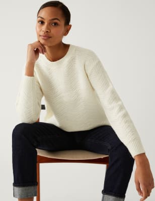 We've woven a hint of wool into this textured jumper for a wonderfully warming effect. It's designed in a relaxed fit with a simple crew neck for easy layering. Ribbing at the cuffs and hem lock in heat to keep you toasty when the temperature drops. Contains recycled materials.n M&S Collection: easy-to-wear wardrobe staples that combine classic and contemporary styles.