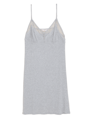 Womens ROSIE Rib and Lace Chemise - Grey, Grey