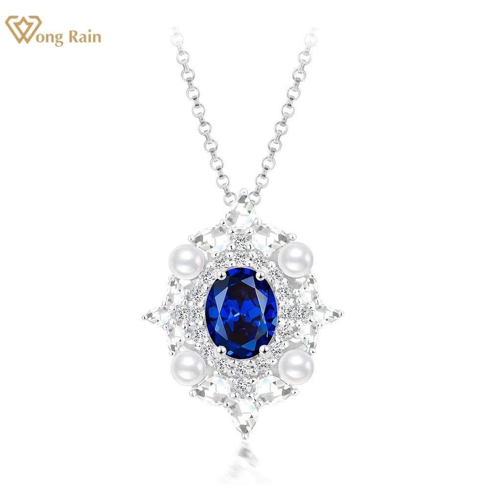Wong Rain Винтаж Стерлинговое Серебро 925 пробы 2CT Овальной Огранки 7*9 ММ AAAAA Циркон Драгоценный Камень Ожерелье Для Женщин Изящные Ювелирные Изделия Подарки на Годовщину 43CM серебряный/синий