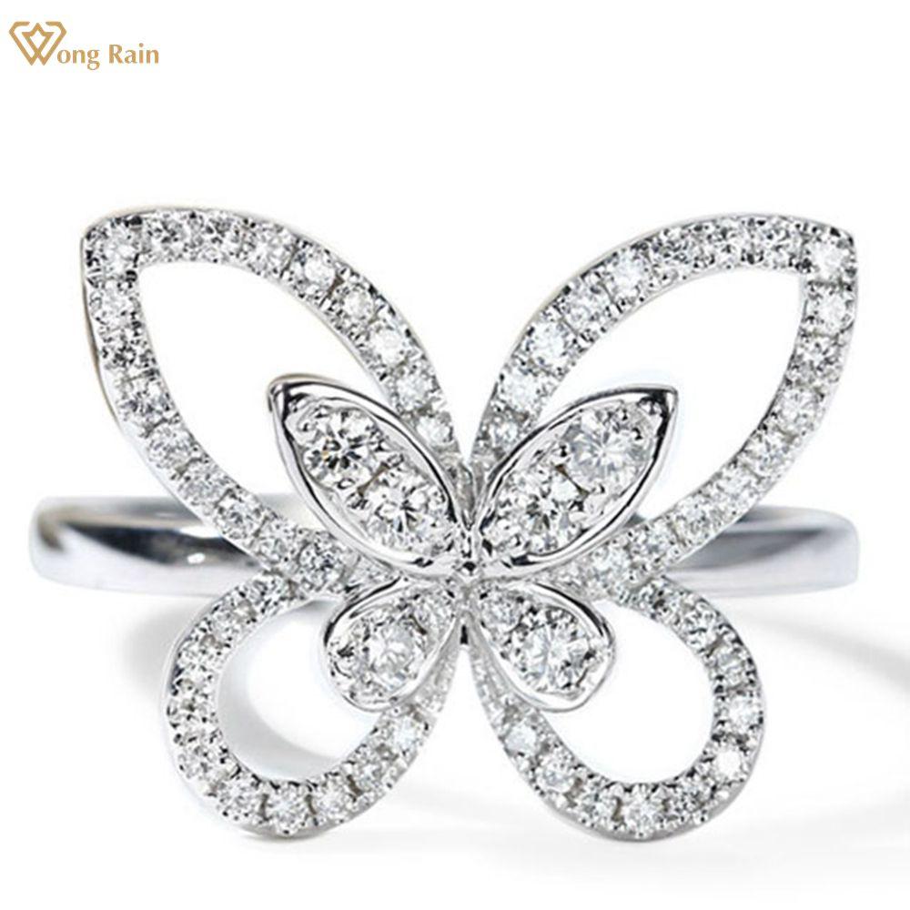 Wong Rain романтическое кольцо из 100% стерлингового серебра 925 пробы с бабочкой и цирконами, драгоценный камень, свадебное кольцо для женщин, ювелирные изделия, подарок US 7 белый