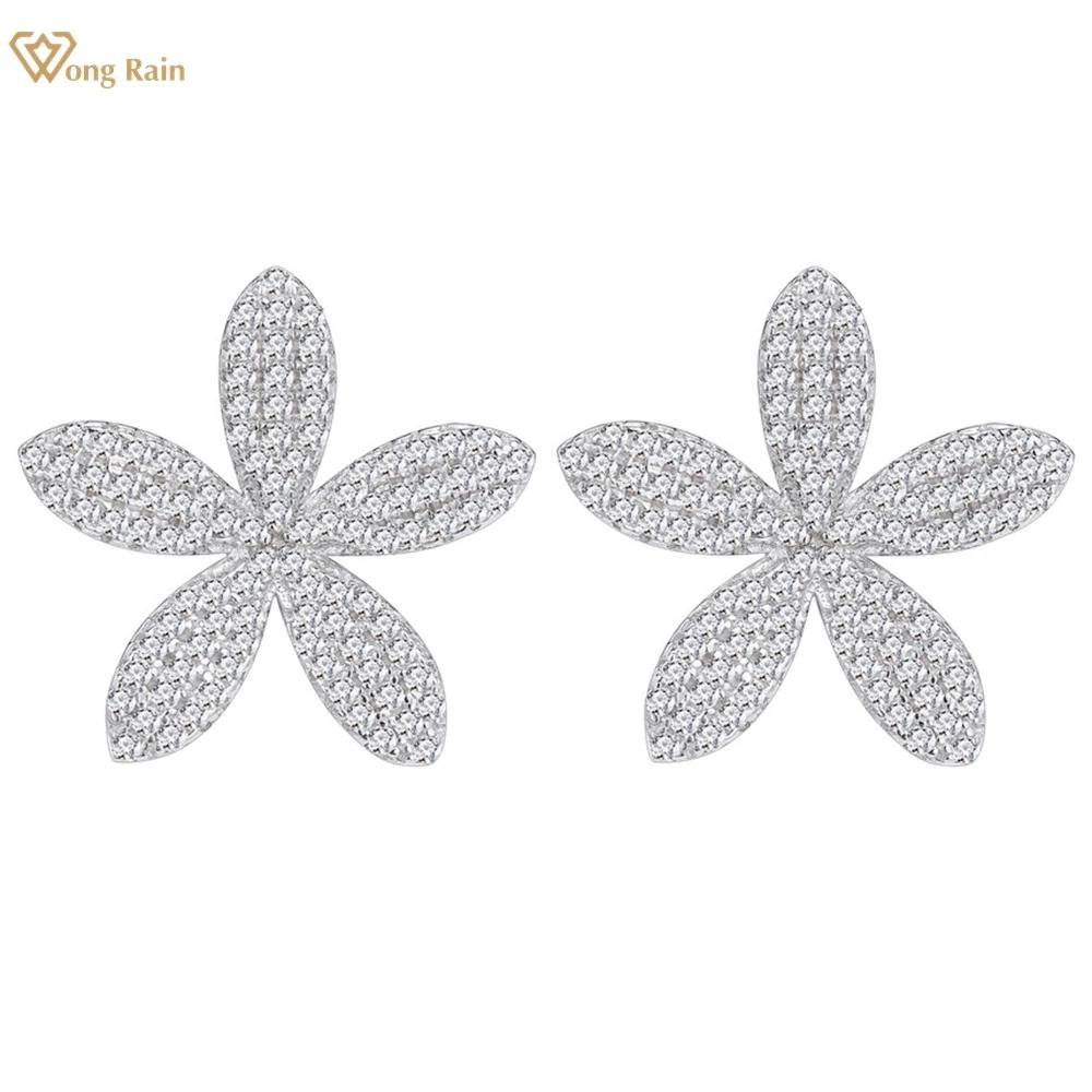Wong Rain 100% 925 стерлингового серебра цветок AAAAA Цирконы Драгоценный камень Романтические женщины Ушные серьги Подарок Ювелирные изделия белый