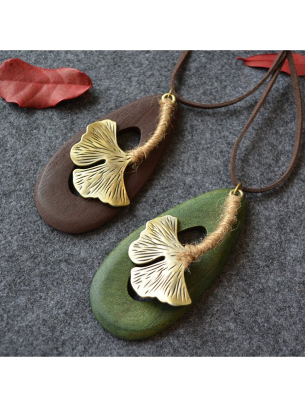 accessories,wooden dripping big maple leaves long sweater chain