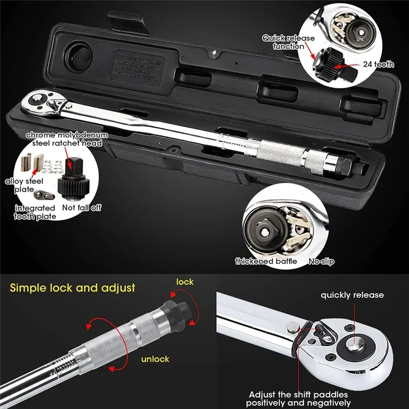 Wrench Repair Spanner Key Hand Tools With Box 3/8-Inch Drive Click Torque Wrench 19-110N. M Square Drive Ratchet