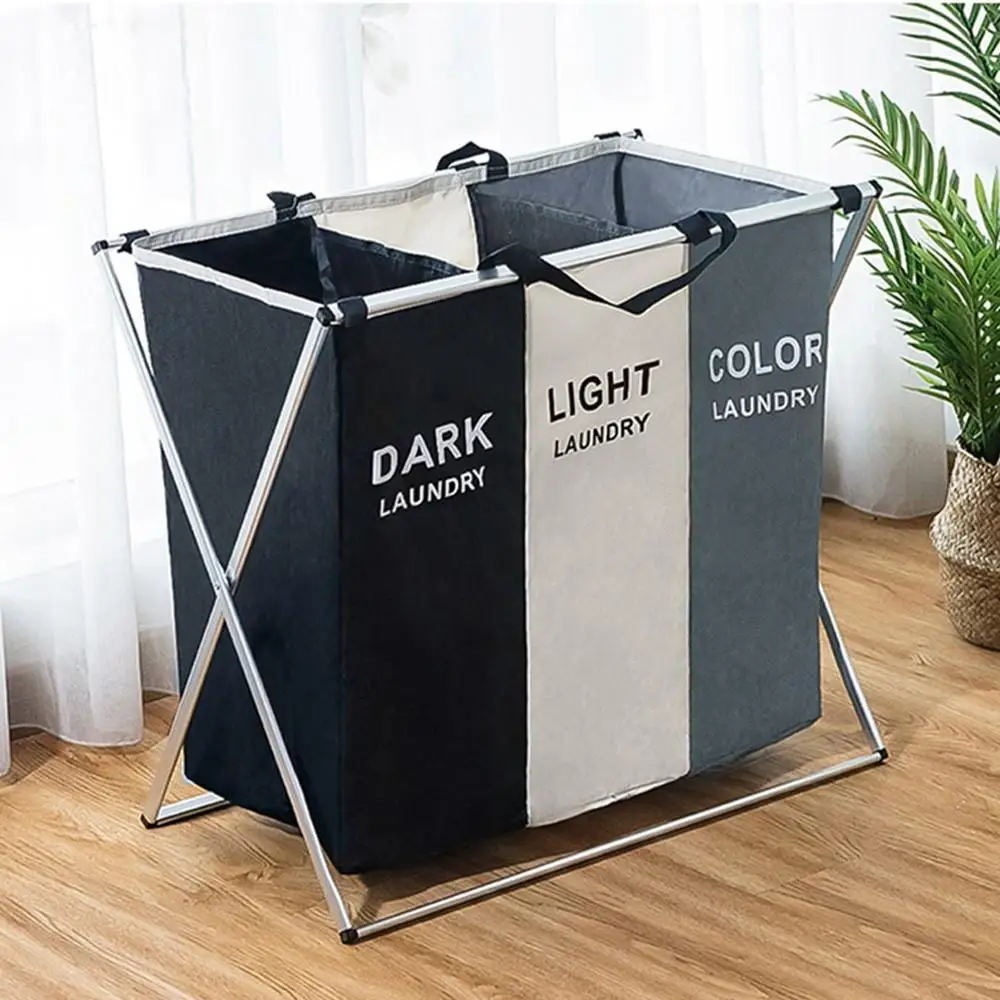 X-образная складная корзина для грязного белья, органайзер с принтом, складная корзина для домашнего белья с тремя ячейками, большая корзина...