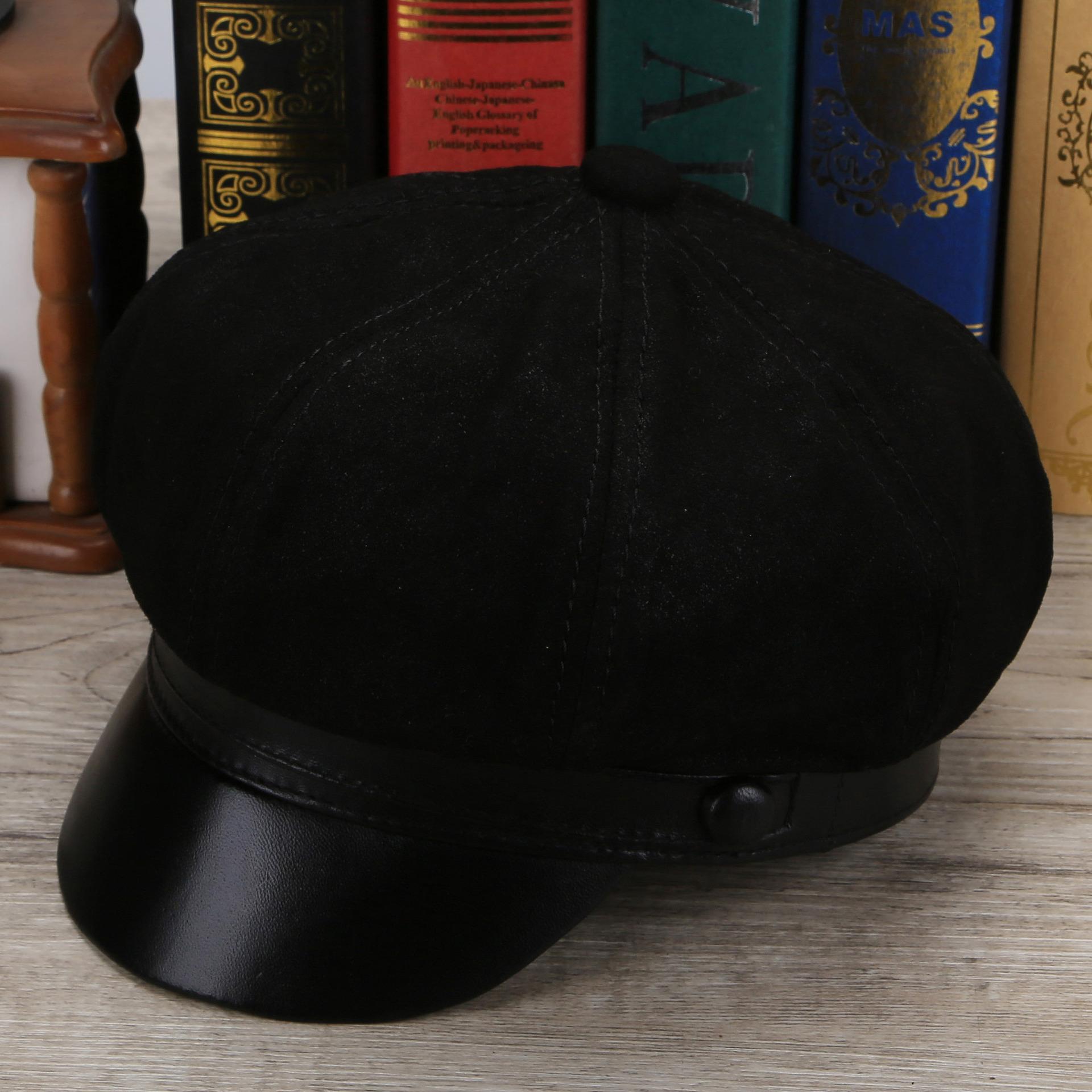 X172 восьмиугольная шляпа из натуральной кожи, женский берет из натуральной кожи, шапка из овчины для взрослых, купольный топ с принтом, военные шапки