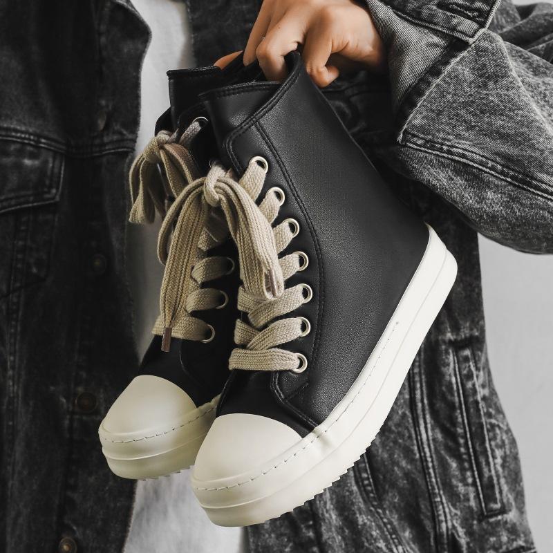 X255 Весна та Осінь Нові Шкіряні Високі Чоловічі Кросівки Тренд Спортивні Повсякденні Кеди Мода Ніша Студенти Збільшення Чоловічі 44 чорний