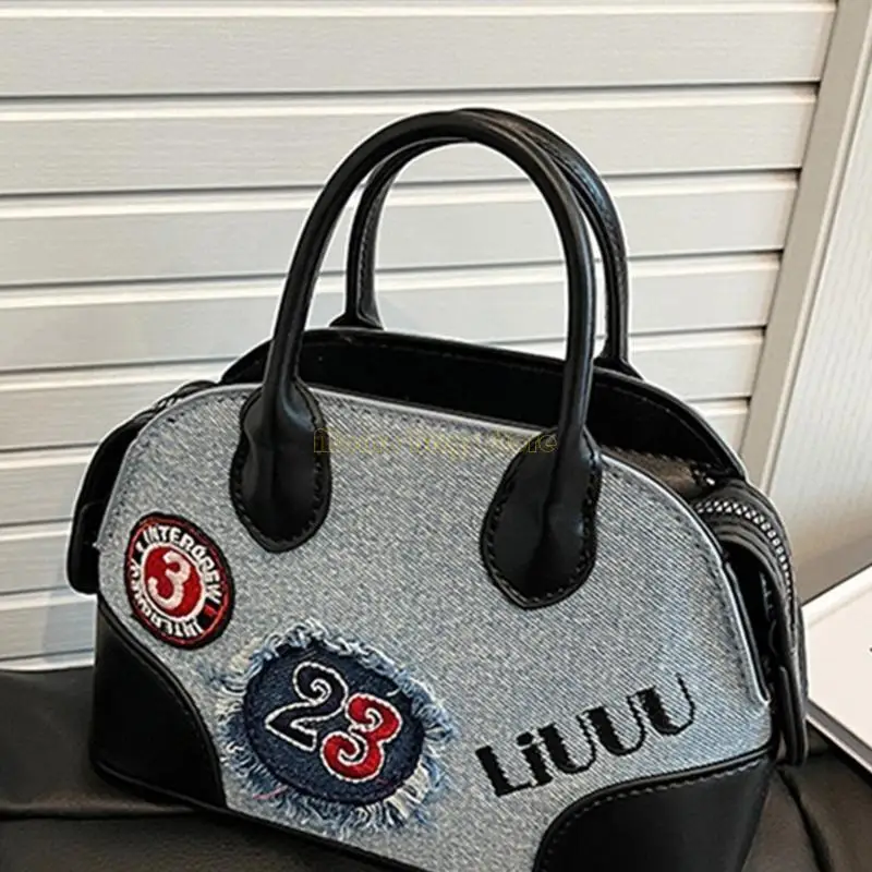 X90D Модные вышитые пятна на плечах мешок с поперечным телом джинсовая форма скорлупы Маленькая сумочка с верхней ручкой для