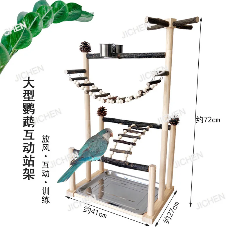 XH Interactive Training Rack Wooden Parrot Toy Branch Ladder Log Rotating Bird Station Pole Combination Station Frame