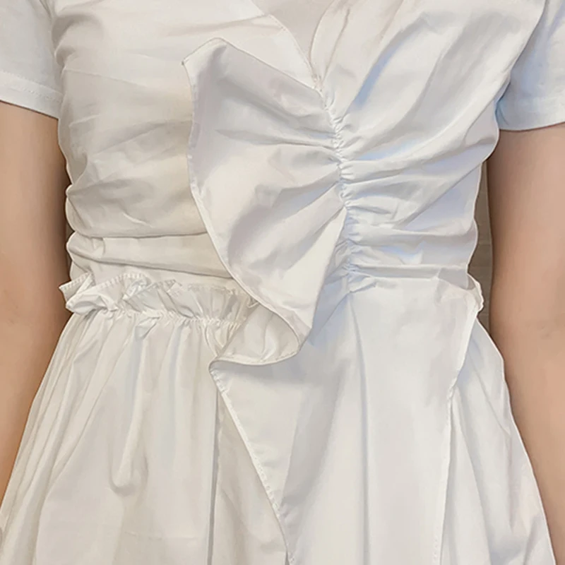 CHICEVER Solid Casual Asymmetric T Shirt For Women O Neck Short Sleeve Ruched High Waist Patchwork T Shirts Female 2021 Summer