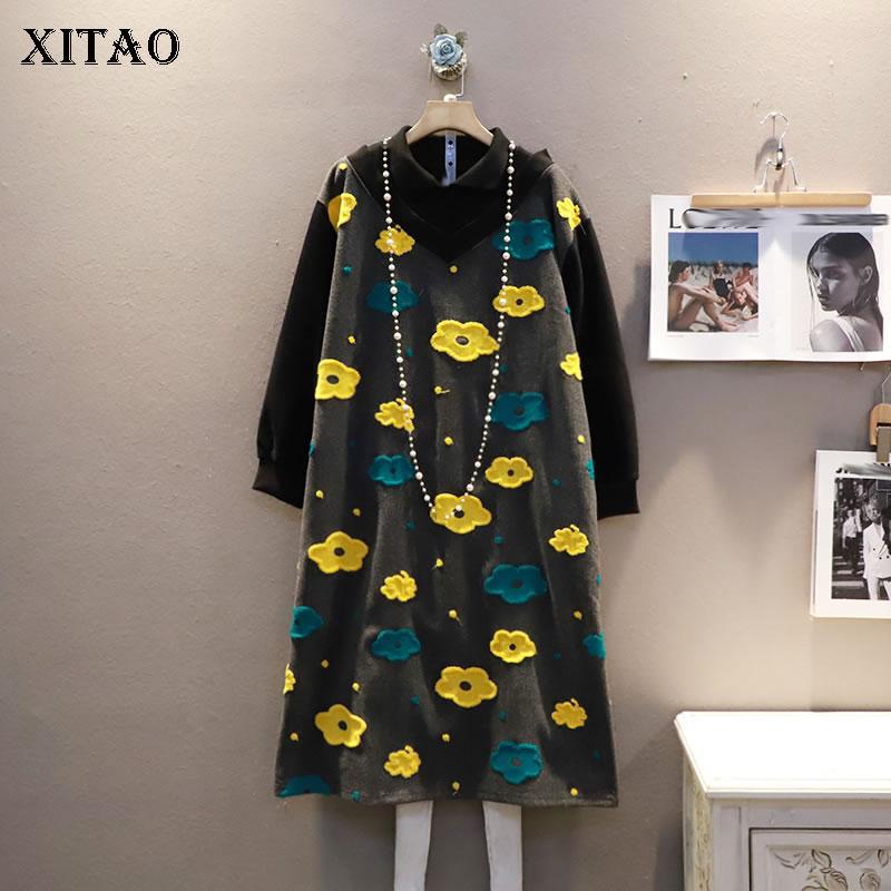 XITAO ложное платье из двух предметов контрастного цвета с цветочным узором, свободное модное повседневное женское платье, новинка зимы, GWJ2184