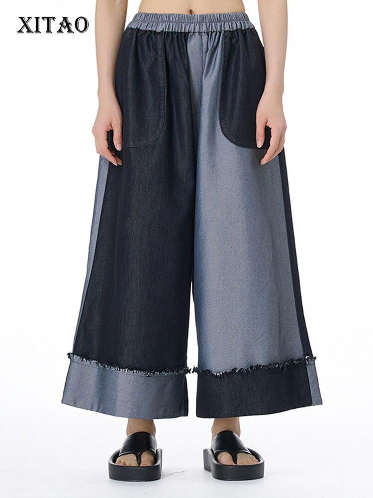 XITAO повседневные широкие брюки асимметричного контрастного цвета в стиле пэчворк женские брюки HQQ1164