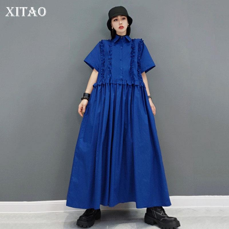 XITAO съедобное дерево, грибное платье со складками, модное однотонное платье с отложным воротником в Корейском стиле, длиной до щиколотки, WMD0754