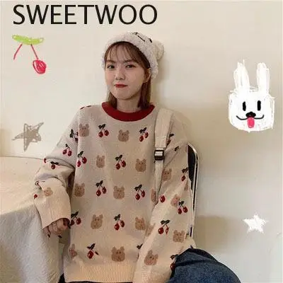 fashion new autumn women sweater pullover women winter embroidery little bee loose warm knitted sweater jumpers ladies y200720, White;black