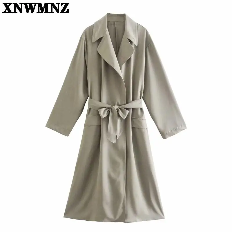 XNWMNZ 2021 Осенняя Женская винтажная свободная ветровка с V-образным вырезом и поясом, модная женская однотонная уличная одежда, тренчкот, шикар...