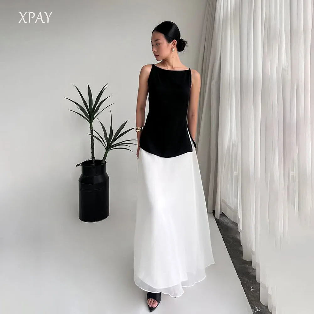 XPAY Современные черные и бетовые платья для выпускного вечера Свадебное платье длиной до пола, плиссированные платья из органзы, вечерние платья по индивидуальному заказу, простое