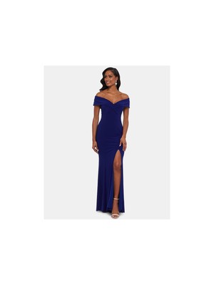 XSCAPE Женское синее длинное вечернее платье с короткими рукавами + расклешенное вечернее платье Размер, Синий