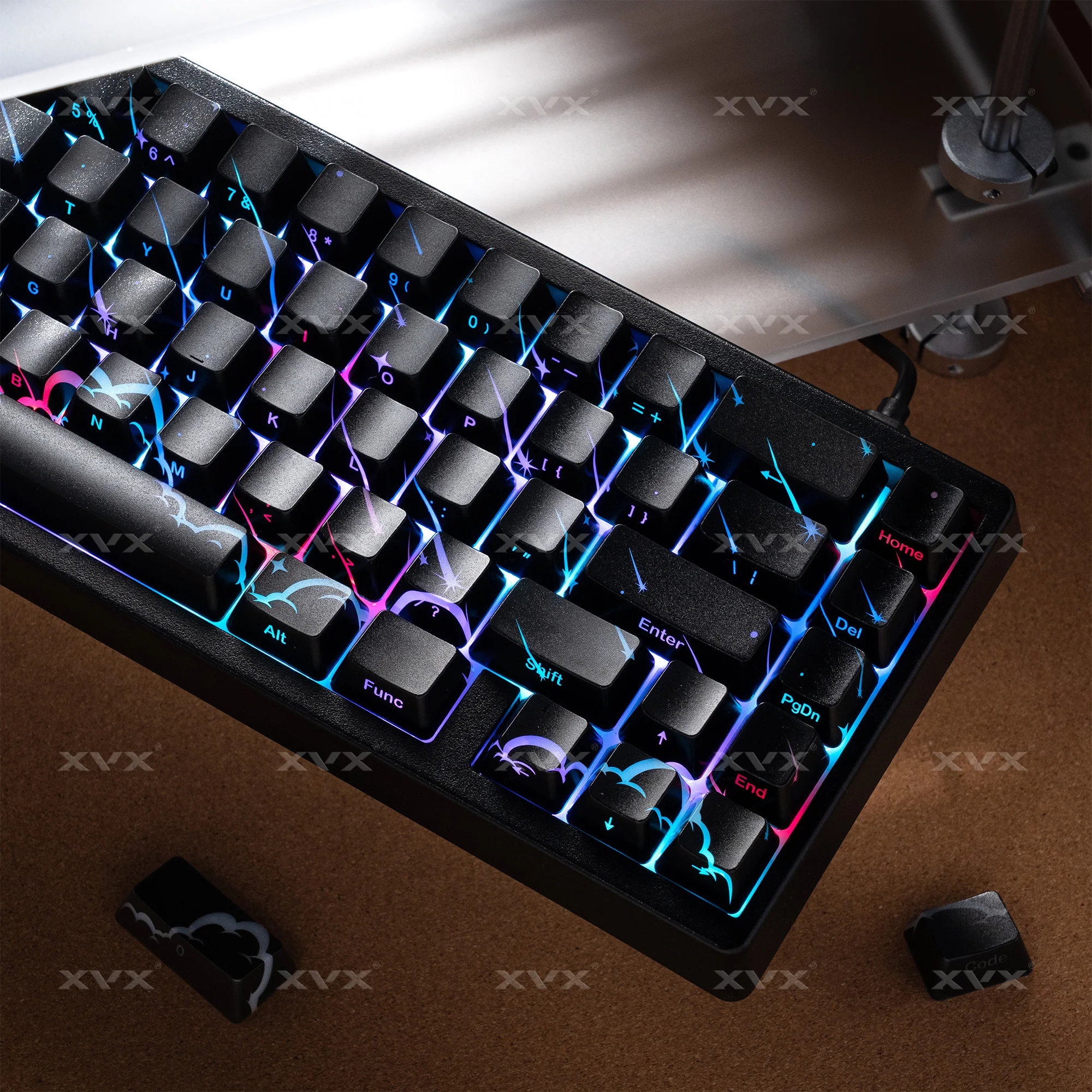 XVX IMD-tech Meteor Pattern Shine Through Keycaps Боковая печать 118 клавиш OEM Черный набор колпачков (только колпачки для клавиш)