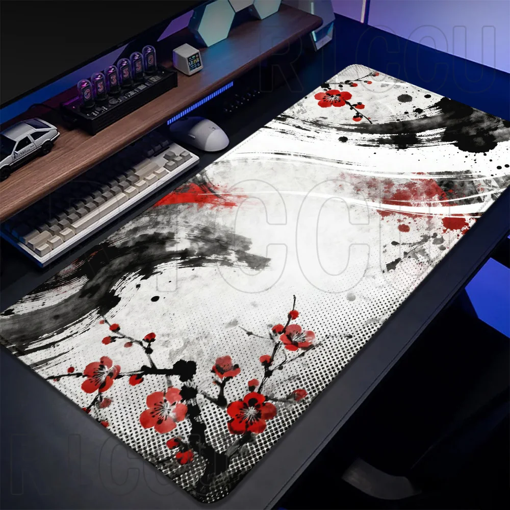 XXL коврик для мыши в японском стиле, настольный коврик для мытья чернил, 300x600 мм, коврик для мыши с прошитыми краями, резиновая клавиатура, удлиненный коврик, игровые коврики