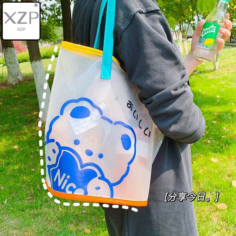 XZP симпатичная Милая прозрачная сумка-тоут, Женская пляжная сумка-мешок с фруктами и мультяшным рисунком, водонепроницаемая летняя сумка из...