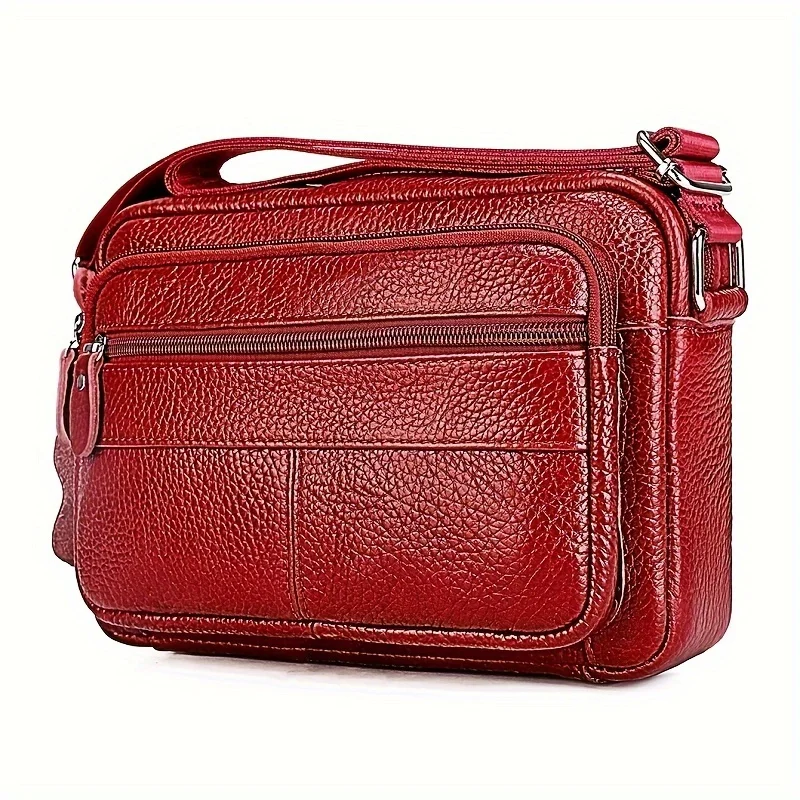 Genuine Leather Crossbody Bag, Fashion Multi Pocket Shoulder Bag, Women's Casual Handbag & Purse