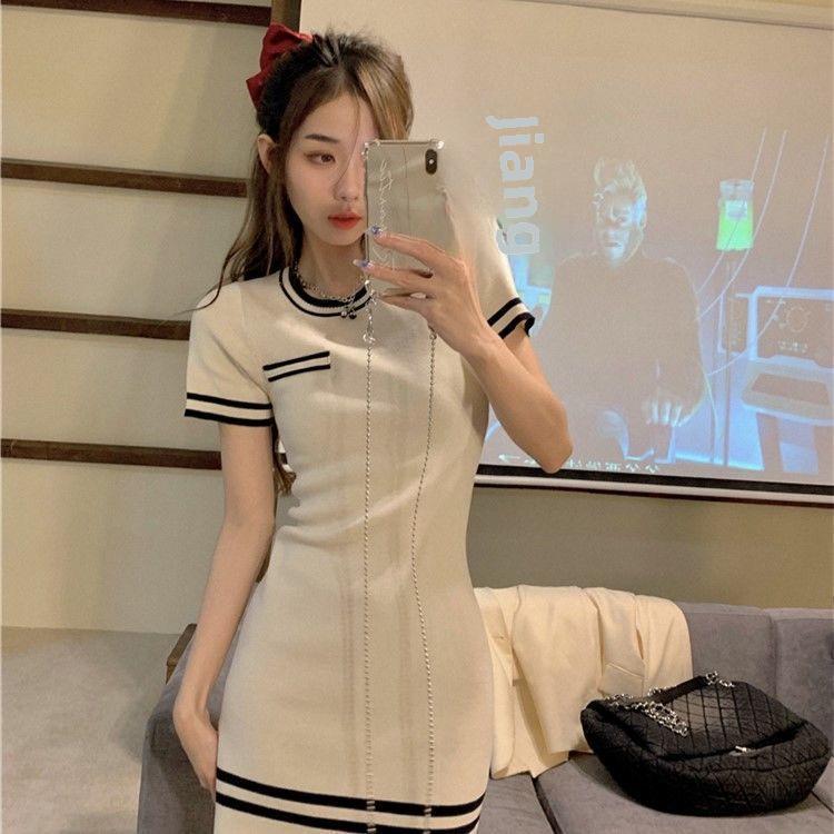 women's t-shirt women knitted 2021 summer style chain baldric v-neck elasticity slim short sleeve top, White