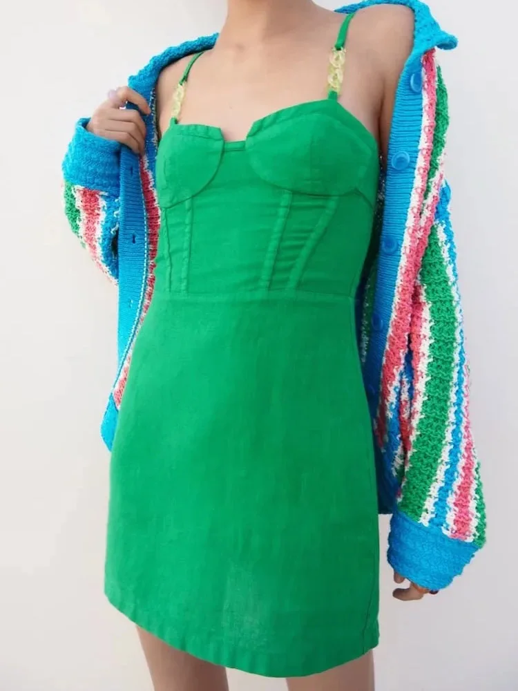 Xikom 2022 женское модное с цепями тонкие бретельки зеленое мини-платье винтажное с V-образным вырезом и открытой спиной на молнии женские плать...